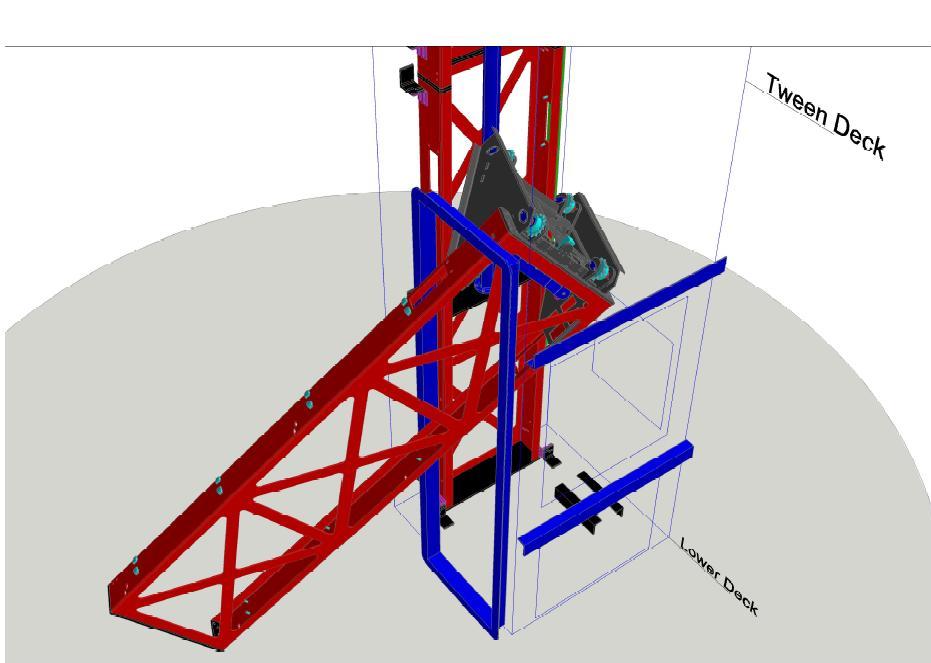 For the refit of Cargo Vessel Ocean Reliance (ex Tokai), TBV Marine Systems has re-designed their concept for dumbwaiters. The famous TBV – backbone – principle was requested for this refit, but there was no top entrance to the shaft. In good cooperating with the shipyard (Dunston Shiprepairs Ltd.), the backbone was designed in three separated plug-and-play parts, but still with integrated TBV Marine systems electro-hydraulic (2:1) chain drive.