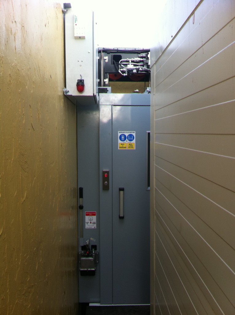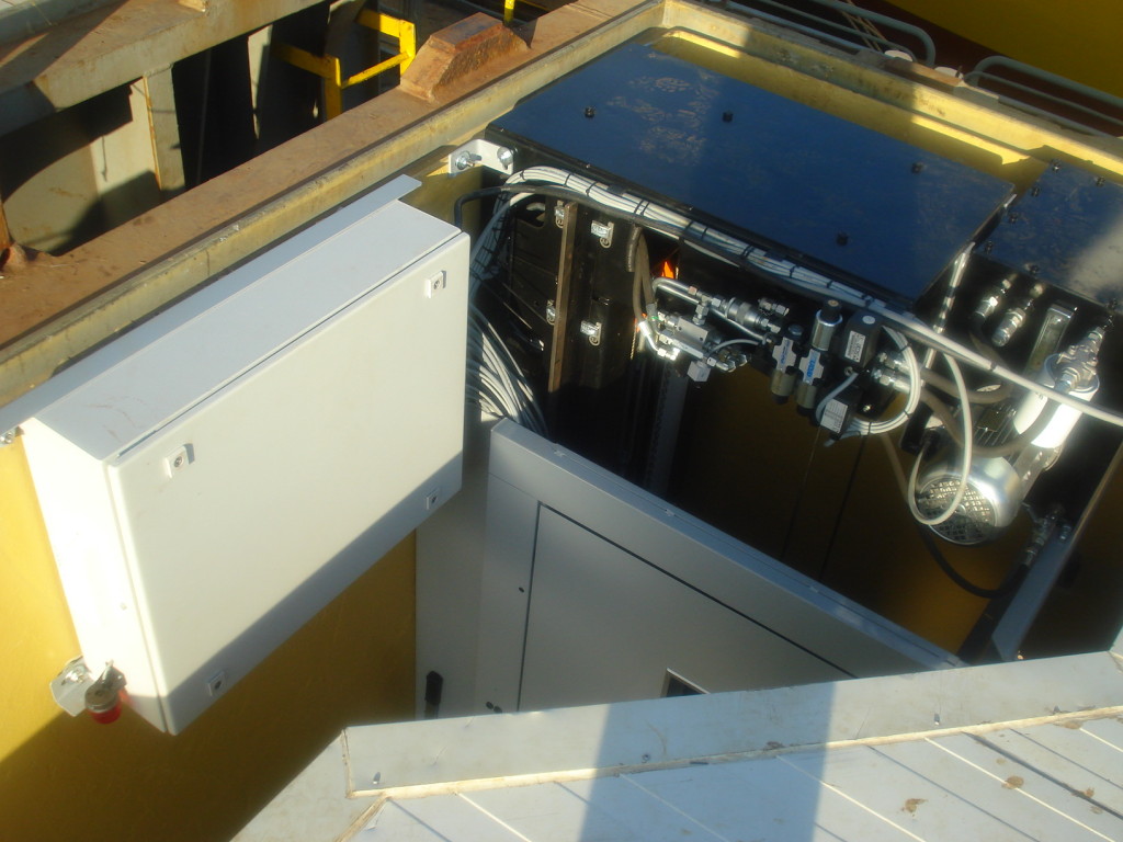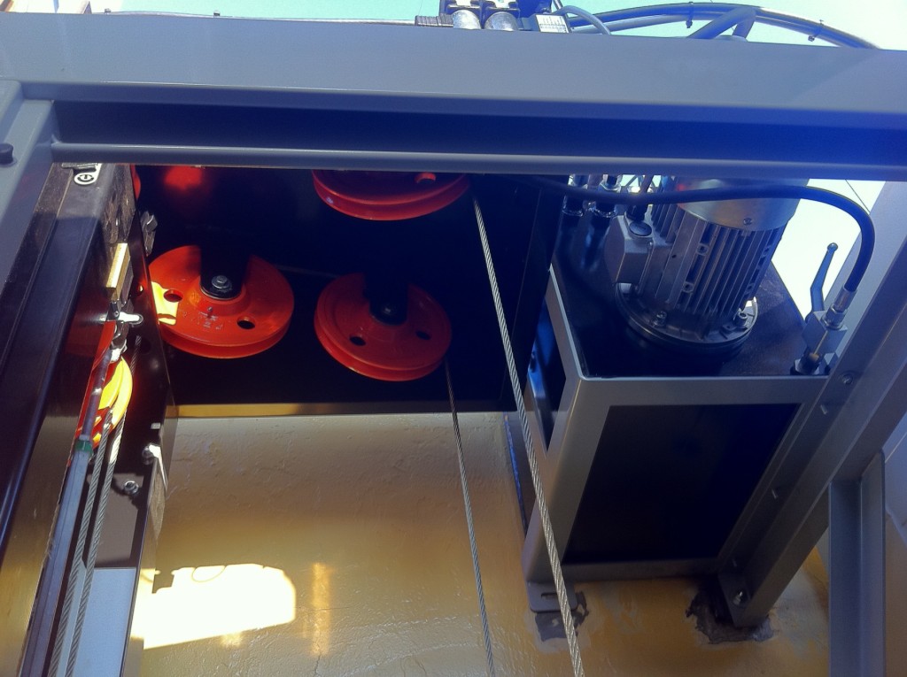 The completed pre-installed construction, existing of the backbone with guiding, cabin, electro-hydraulic cable drive (1:4) and control box is based on the TBV Marine Systems back-bone design and is made very compact. Also it could installed very easily. All three elevators where hoisted in, just in one day totally. In the same week installation of the backbone and landing doors was finished. In the second week controls and hydraulic drives were adjusted and the complete elevators were tested, commissioned and hand over to the client.
